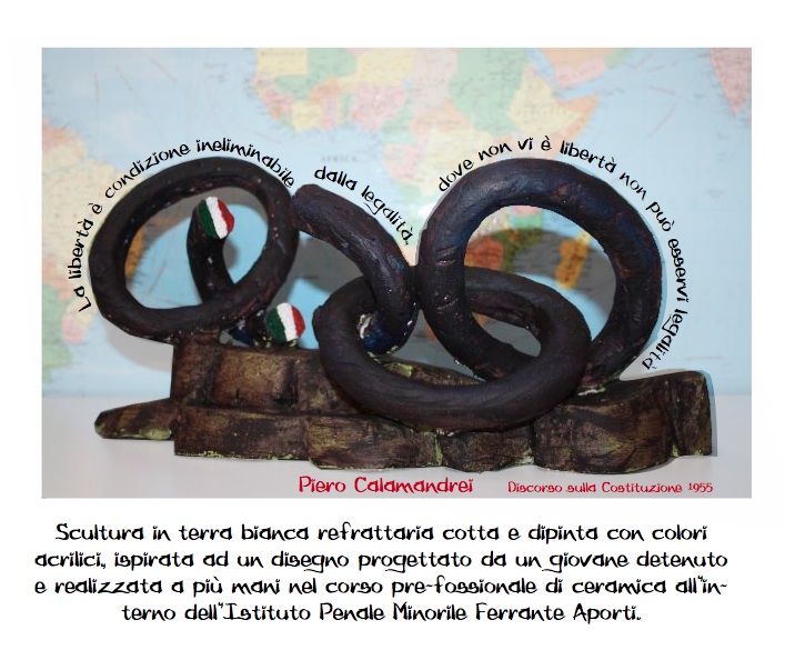 Oltre alla produzione discorsiva e grafica elaborata a resoconto e commento del loro lavoro sulla Costituzione, i ragazzi, impegnati anche in un “Laboratorio pre-professionale” di ceramica, hanno realizzato una interessante scultura su progetto di uno di loro, con lo scopo di socializzare e comunicare ad altri le emozioni e i contenuti del loro lavoro.