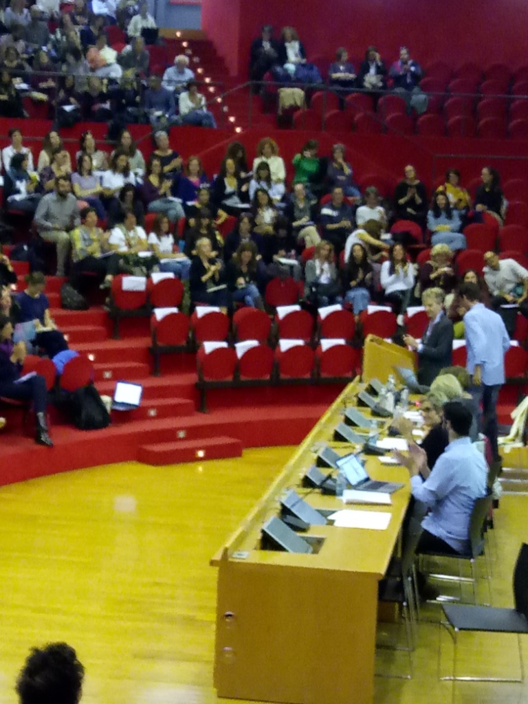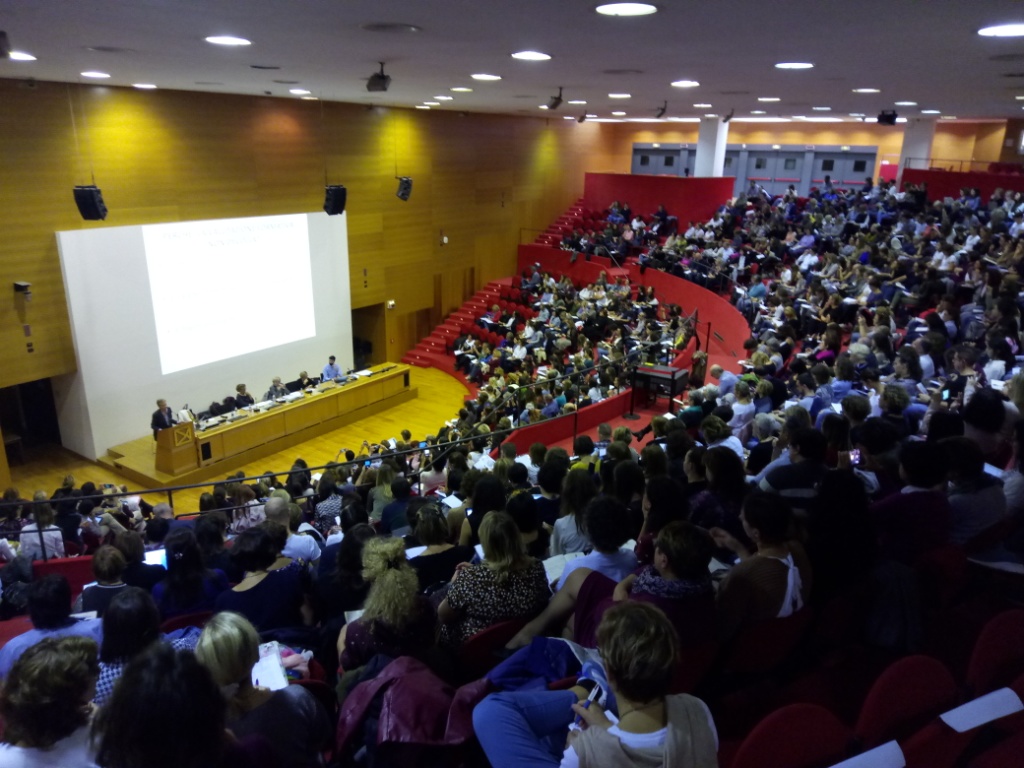 Va detto che la sala era stracolma (si è parlato di più di mille iscrizioni) di un pubblico vario e attento., tra il quale le studentesse o laureate da poco in Scienze della Formazione si mescolavano ai docenti e dirigenti in servizio. La giornata del resto era stata preceduta da interessanti iniziative preparatorie e soprattutto da un ampio lavoro di ricerca e sperimentazione, che ha consentito di raccogliere una quantità assai ragguardevole di “Esperienze di non voto”, da parte di docenti e di scuole che hanno sperimentato pratiche alternative alla (sola) valutazione numerica.